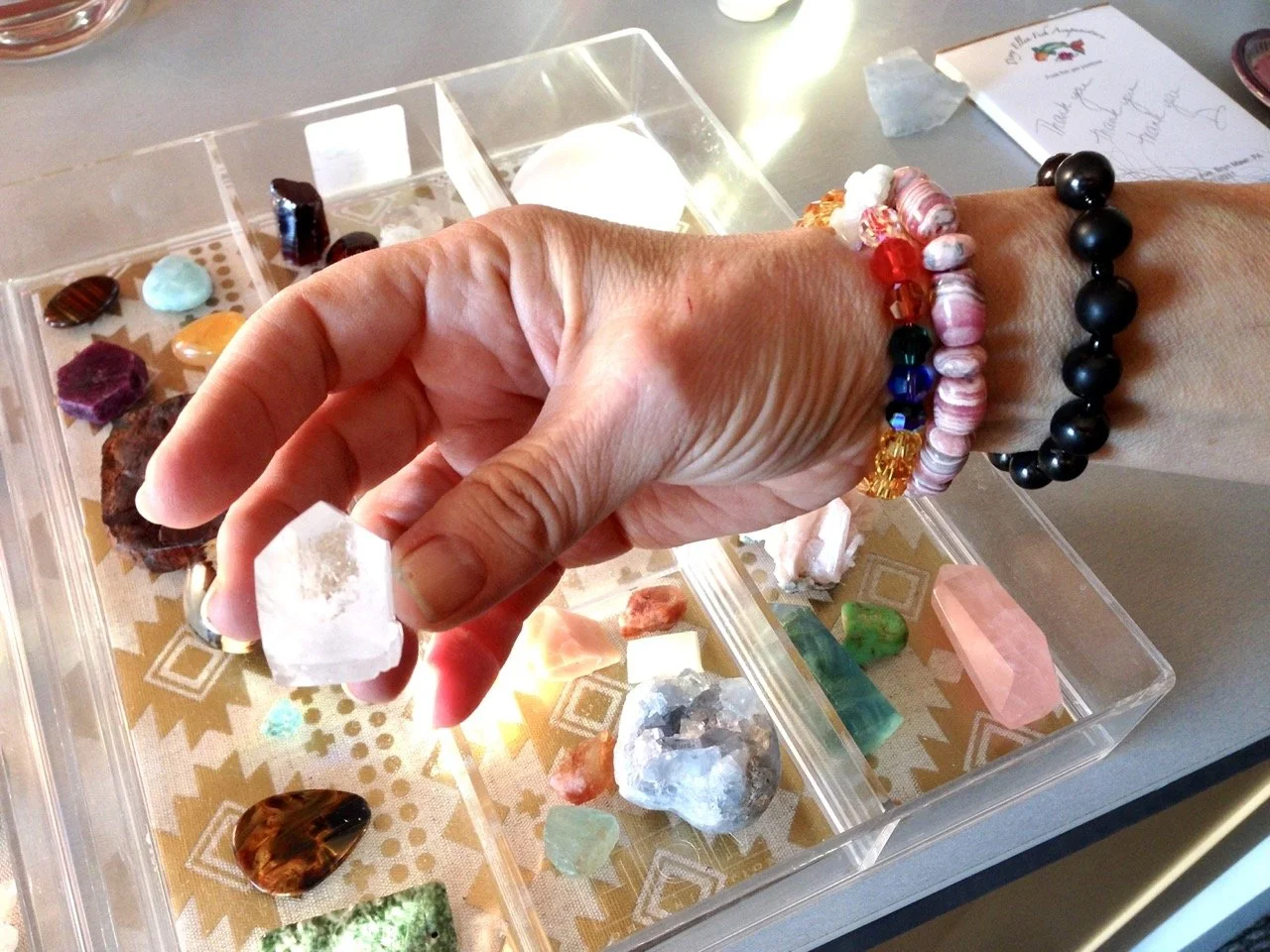 Dory Ellen and Judy work together to create custom stretch gemstone bracelets; Dory Ellen determines which stones are needed for a particular patient, and Judy crafts the bracelet to size. You can also shop from a selection of beautifully designed bracelets and necklaces on display at the office - each one is unique!